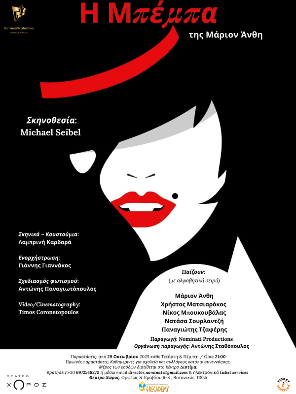 Η Nominati Productions παρουσιάζει τη θεατρική παράσταση «Η Μπέμπα» της Μάριον Άνθη, σε σκηνοθεσία Michael Seibel, που κάνει πρεμιέρα την Τετάρτη 29 Οκτωβρίου 2025 στο Θέατρο Χώρος. Πρόκειται για ένα έργο που με φόντο την Ελλάδα του ’50 και ’60 αναδεικνύει ζητήματα κοινωνικής καταπίεσης και έμφυλης βίας, δίνοντας παράλληλα έμφαση στη δύναμη της ψυχής και... Continue Reading →